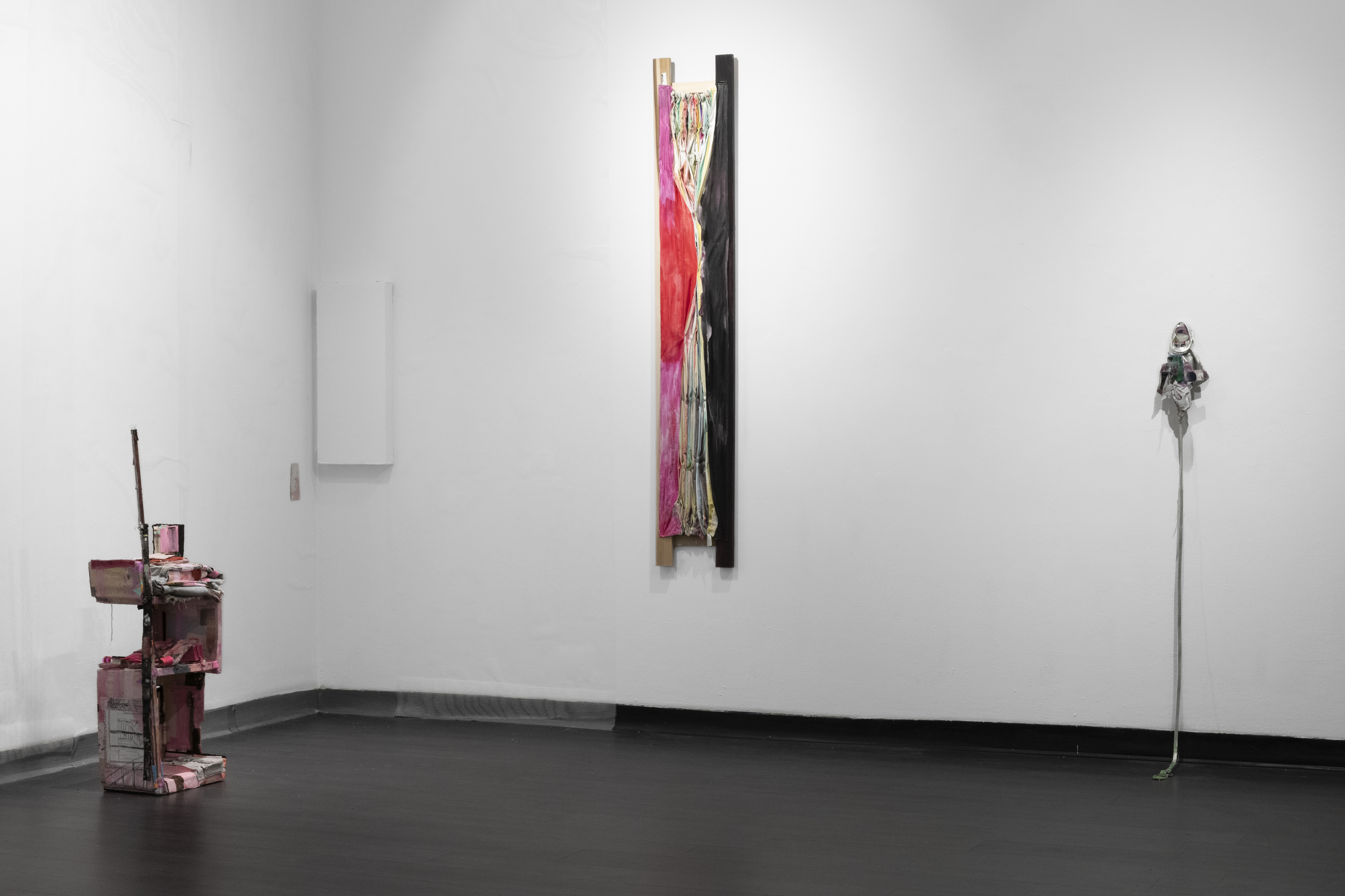 CovertJoy , 20” x 6” x 3”, wood, fabric, cardboard, nails, objects, acrylic, 2024